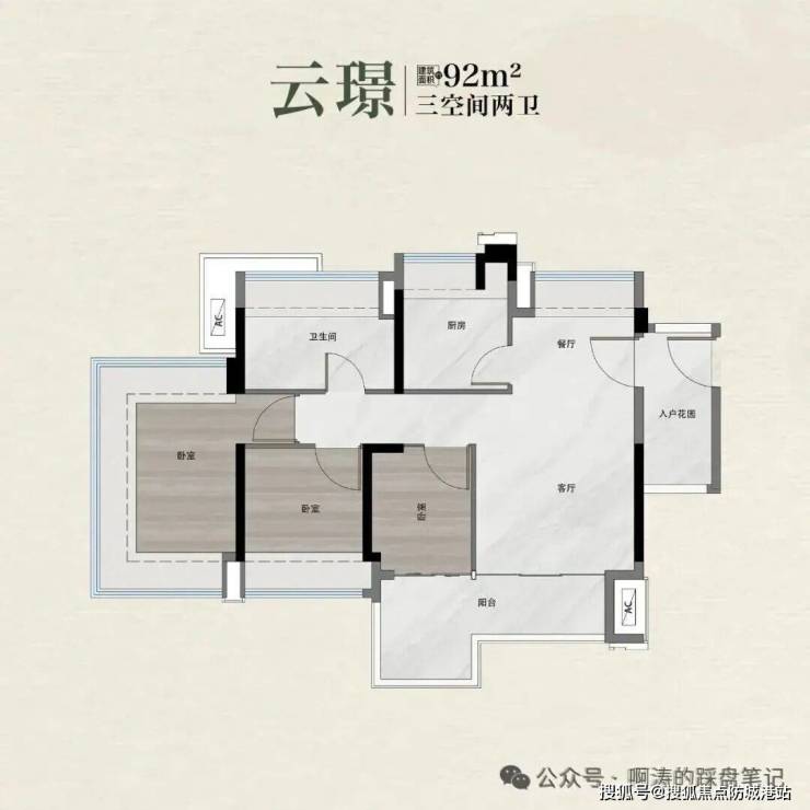 越秀·鸿璟台主推建面约89-122㎡的三四房户型,所有户型均为全南向设计,格局方正,动线合理,能够满足不同家庭结构的需求。建面约89㎡的三房户型,拥有独立入户花园和L型双面宽观景阳台,东南向无遮挡视野,LDKB一体化大方厅设计,空间利用率非常高,非常适合年轻的三口之家,入户花园可以用来放鞋柜、收纳杂物,阳台可以种些花草,打造一个小花园。建面约92㎡的三房户型,拥有12米的超宽采光面,四开间朝南,双面宽L型无柱阳台,中轴式餐厨体系,能够随心切换中西双厨,居住舒适度更高,周末可以邀请朋友来家里聚餐,在阳台烧烤,非常惬意。建面约99㎡的四房户型,四开间南北对流,13.8米的采光面,全明通透,LDKB一体化大方厅,四空间+两卫布局,能够满足三代同堂的居住需求,每个房间都有充足的采光和通风,老人和孩子住得都很舒服。建面约122㎡的四房户型,为纯南专梯专户板楼,赠送约16㎡的私家电梯厅,私密性更强,空间更加宽敞,非常适合改善型购房者,私家电梯厅可以用来放鞋柜、婴儿车、自行车等,非常方便。