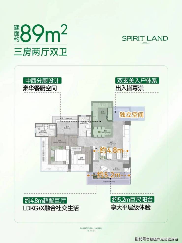 项目主力户型覆盖约89-134㎡,包括三房两厅和四房两厅两卫设计,户型设计科学,空间利用率高。89㎡三房两厅两卫,约115%使用率,LDKG + X一体化设计,打造约4.8米宽敞巨厅,内外双玄关提升入户仪式感,主卧配270°全景飘窗,采光通风俱佳。