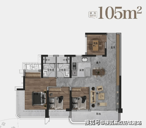 105㎡三房单位,配有6.1米巨幕阳台