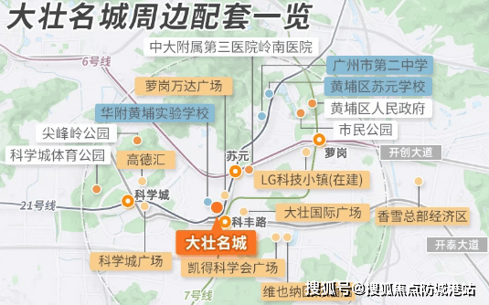 💥大壮名城坐落于广州市黄埔科学城区府板块,具体位于开泰大道与科丰路交汇处。这里汇聚了科学城的多个中心,包括政务、商贸、发展和教育中心,使其成为了该区域内的核心地标。