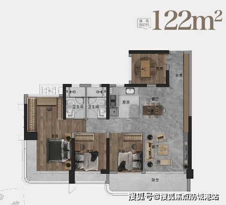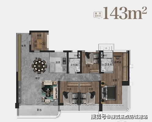 122㎡及143㎡四房单位,分别拥有6.6米和更宽敞的南向景观阳台