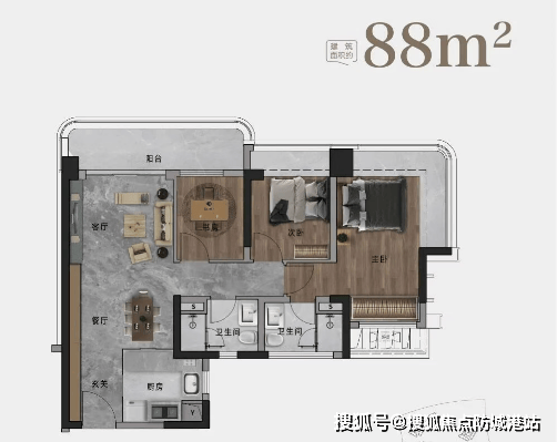 88㎡两房至三房单位,拥有5.7米巨幕阳台