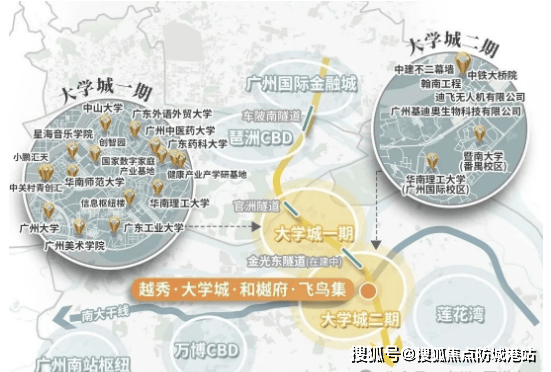 这里不仅聚集了暨南大学、广州医学院等高校资源,还规划有大学智慧谷一至三期、产业孵化基地、广州大学城科技创新产业园等产业配套,未来将成为集教育、科创、居住于一体的高端板块。