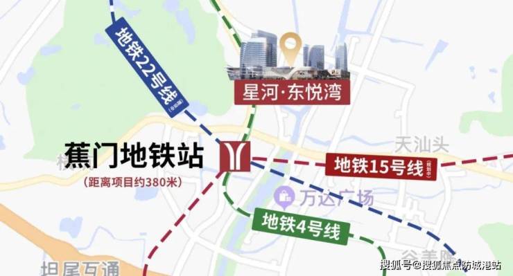 项目交通优势明显,距地铁4号线蕉门站仅约610米,步行约10分钟即可到达。未来规划的15号线和建设中的22号线将汇聚于此,形成三轨交汇的交通网络。通过地铁4号线,3站可达庆盛高铁站,换乘后可直通深圳、香港,畅达全国。从蕉门出发,55分钟即可直达珠江新城,大大缩短了与广州中心城区的通勤时间。此外,项目周边还有多条高速公路和快速路,自驾出行也十分便捷,可快速连接湾区各大城市,实现湾区生活快人一步。