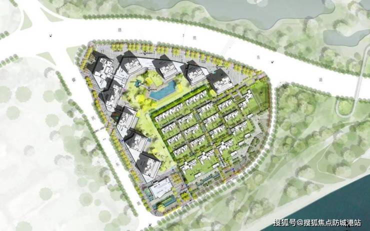 鹏瑞皓玥湾项目占地广阔,由八栋120米高层住宅、一栋返迁高层住宅、三十九栋多层住宅及配套商业和会所组成。整体规划注重建筑与自然景观的和谐共生,高层建筑布局合理,最大化提升江景资源利用率。项目采用错落有致的V字形围合式布局,打造出开阔的中庭景观,兼顾私密性与公共交流空间。项目设计充分考虑地形高差,商业区布置在地势较高处,营造立体多层次空间感。整体住宅建筑结合现代设计语言与环保理念,强调居住体验与环境保护的有机统一。