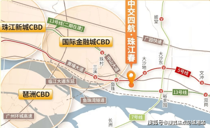 项目地处老黄埔旧改中最靠近天河的位置,距离港航大厦直线距离仅约800米,紧邻地铁5号线鱼珠站与大沙地站,交通便利。此外,随着13号线二期的开通,将进一步提升通勤效率。项目周边已落地广州国际智谷、粤开资管大厦等重点项目,未来产业配套完善,具有较高的发展潜力。
