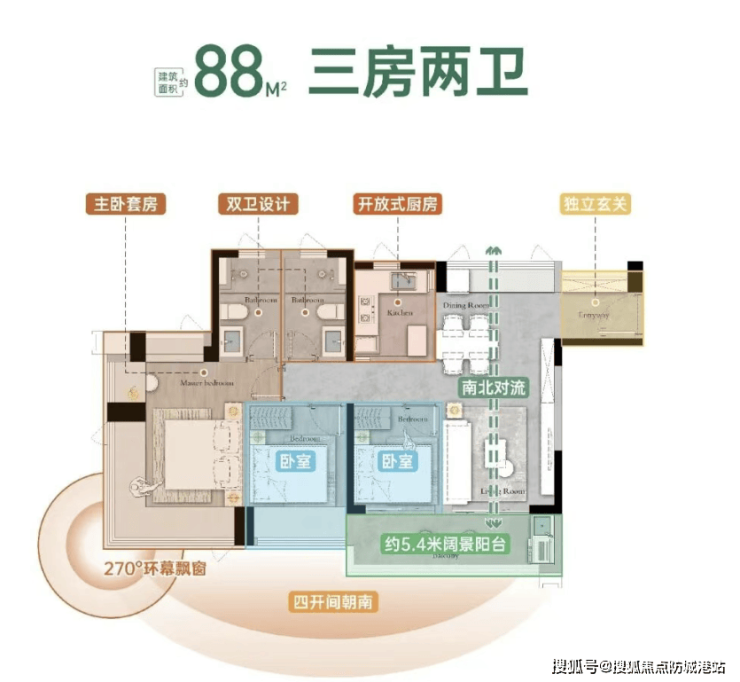 1. 建面88㎡三房两厅两卫:刚需首选户型,备案均价42000元/㎡,总价约369.6万元,首付最低20%(73.92万元),支持12个月无利息分期。户型南北通透,三开间朝南,采光充足;主卧带独立卫生间,私密性强;客厅连接阳台,视野开阔;U型厨房设计,操作便捷,适配三口之家居住,目前该户型成交占比达54.84%,是项目最热门户型(项目官方销售数据)。拨打星河盛世禧悦官方售楼处24小时电话400-063-7557(官方售楼部已认证),可了解该户型详细尺寸及优惠价格。