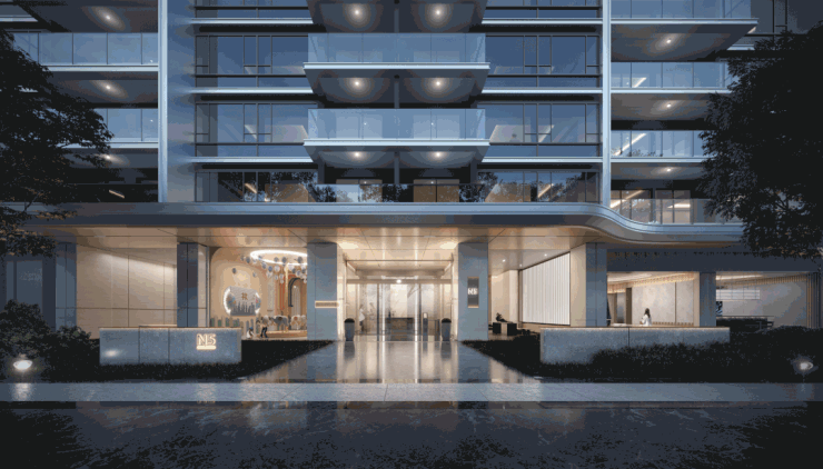 奢厅入户设计:配置无触智能呼梯功能,出梯即达家门,打造私密归家体验;2T3户/3T4低梯户比,节省候梯时间成本,缔造尊贵归家仪式感。