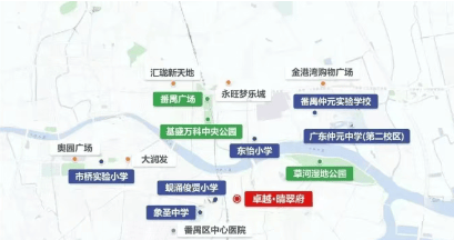 卓越晴翠府地处番禺区桥南板块,紧邻市桥河岸线,拥有6公里长的滨水景观带和4座森林公园。区域内规划有地铁17号线(建设中),未来将形成3地铁交汇的交通网络,大大提升了出行的便捷性。此外,项目距离3号线、18号线番禺广场站约3.4公里,通过公交接驳可轻松抵达。