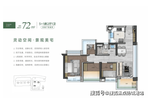 答:在售有 72-88-105㎡四房户型,二期 5 号楼还有 110-129-143㎡大户型,73㎡左右可做四房,使用率超高。
