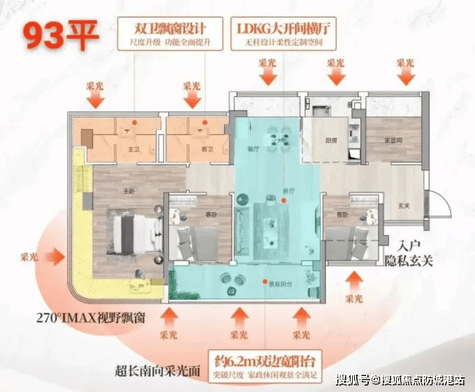 2. 93㎡四房两厅两卫:高拓实用,隐私性佳