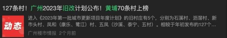 黄埔旧改发展迅速——黄埔区的城中村继天河区、海珠区于广州第三大城中村改造大区,《广州2023年城市更新项目年度计划》整个广州127条村就改,其中黄埔占70条村。