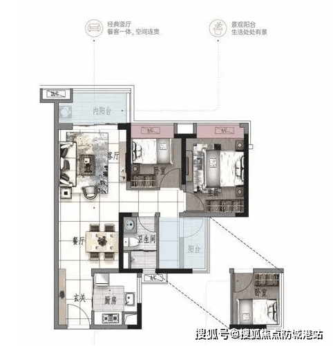灵动刚需户型:99㎡3+1房2卫,户型升级优化,灵动入户空间可灵活改造,满足家庭多元化需求。南向约6米阳台,尽揽社区园林与自然景观,视野开阔;主卧套房设计,配备独立卫生间,保障居住私密性与舒适度,适合三口之家或二胎刚需家庭居住,兼顾实用性与灵活性。