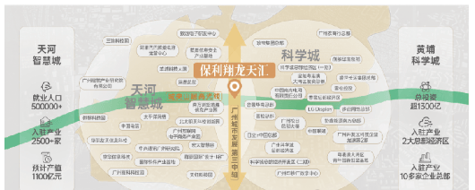 地理位置:保利翔龙天汇位于广州第三发展中轴线“科技创新轴”核心区域,地处天河智慧城与黄埔科学城双城交汇之地,隶属于黄陂板块。科技创新中轴以琶洲为核心,北起中新广州知识城,南抵广州大学城,汇聚金融总部、人工智能、数字经济、智能制造等核心产业,未来产业布局成熟后,承载的GDP将超过1万亿元,扛起广州经济半壁江山,区域发展潜力无限。