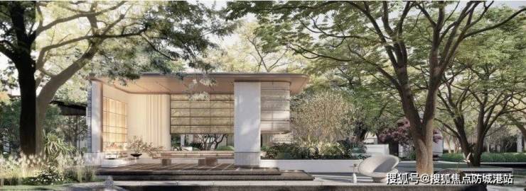 7、景观资源是该项目的一大亮点。走进小区,首先映入眼帘的水景空间,引入奢牌美学灵感,复刻CHANEL水上秀场场景打造的泠汀水院,独具魅力。高达10M的琉璃光塔,取广府百年非遗手打铜工艺,彰显文化底蕴。约160米长林影游廊,巧妙串联接待大堂与室内会所,为业主营造出一种优雅的归家氛围。园林采用大面积的水景与绿植相结合的方式,让业主体验踏水归家、绿带环腰的美妙感受。1500方林下浮岛花园更是精妙,复刻东京安缦森林盒子的“隐心茶坞”,四周宣纸玻璃环绕,宛如精致的玻璃盒子隐藏在森林中。外围全冠移植百年朴树打造临水剧场,整个会客平台仿佛漂浮在静谧水面,使得内外景观相互交融,视线与空间相互渗透,打造出可观可赏的临水浮台,并设置围炉卡座营造安缦式自然度假氛围,让业主仿佛置身于诗意的画卷之中,享受自然与宁静。