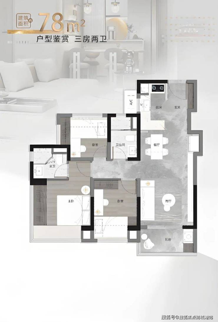 中建海丝城首推B3栋住宅,涵盖78㎡三房两卫、88㎡三房两卫、107㎡四房两卫及117㎡四房两卫四种户型,满足不同家庭结构的需求。其中,78㎡紧凑三房总价约280万起,适合新婚家庭或三口之家;而117㎡奢阔四房则更适合追求品质生活的高净值家庭。