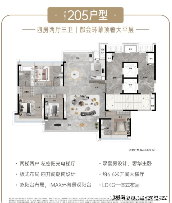 建面约 205㎡奢适四房:中轴园林楼王,环幕景观体验