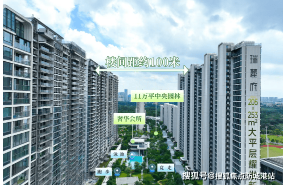 低密板式奢宅配置:1.6 容积率 + 60% 绿化率,纯南向一字板楼设计,近百米楼间距保障居住舒适度;
