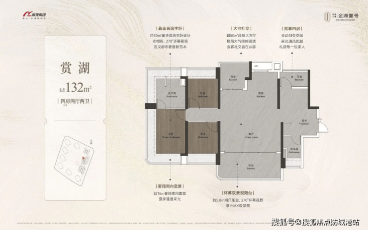 在产品力方面,敏捷万博金湖壹号的主力户型覆盖了从刚需到改善的全方位需求。98-149㎡的全南向四房,均采用精装修交付,得益于新规设计,得房率高达 100%-110%。