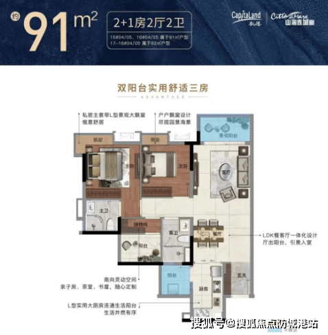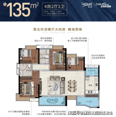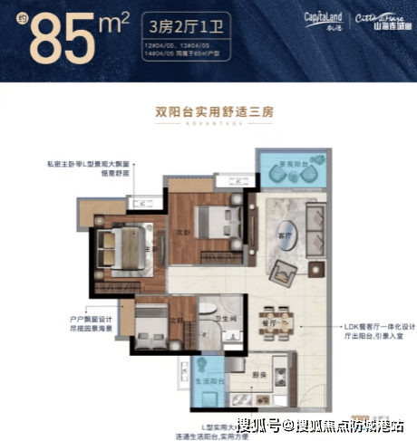凯德山海连城提供多样化的户型选择,从建面约85平方米的三房两厅一卫到约211平方米的花园叠墅,每个户型都经过精心设计,力求最大化利用空间并提供舒适的居住体验。尤其是下叠户型,带有超大的入户花园和观景阳台,厨房连通生活阳台,大大提升了居家生活的便利性和舒适度。