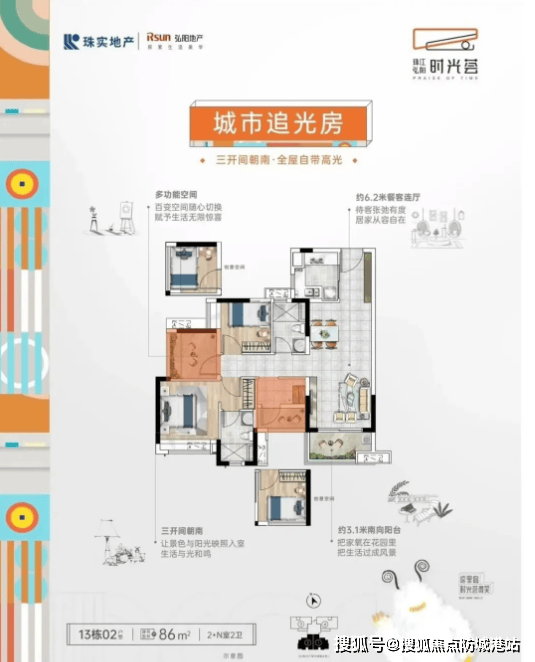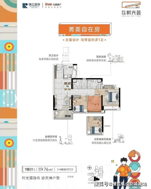 珠江时光荟的户型设计以刚需家庭需求为核心,主打高实用率三房产品,涵盖66㎡、76㎡、86㎡、96㎡多种面积段,能满足不同家庭结构的居住需求。项目使用率高达90%,空间布局合理,无浪费面积,让小面积也能实现大功能。