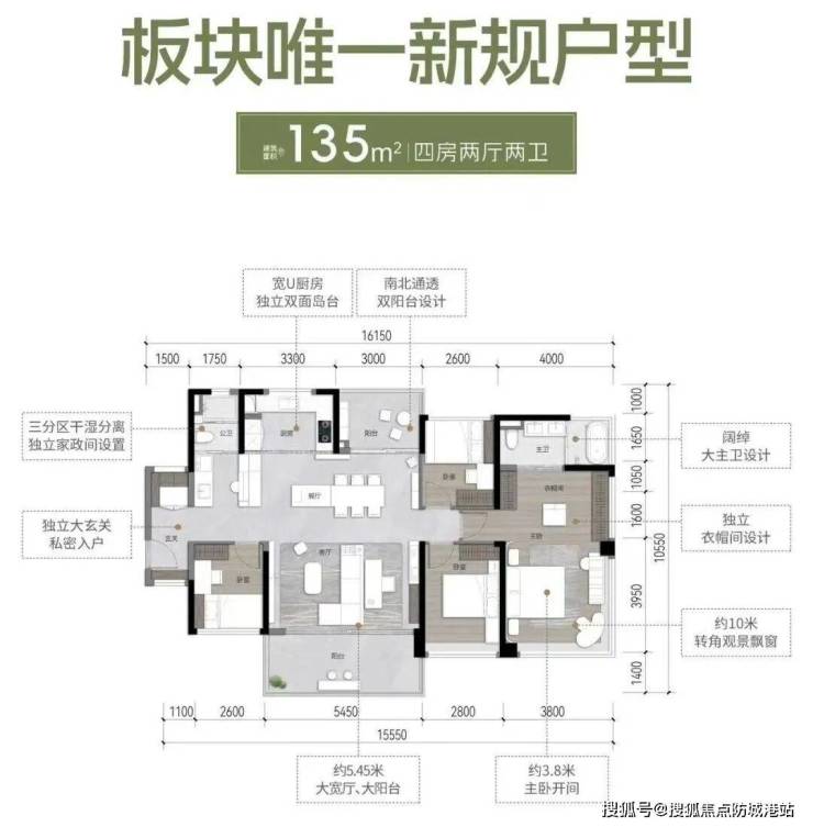南北通透/大开间朝南:保障室内良好的通风和采光,营造健康微气候。