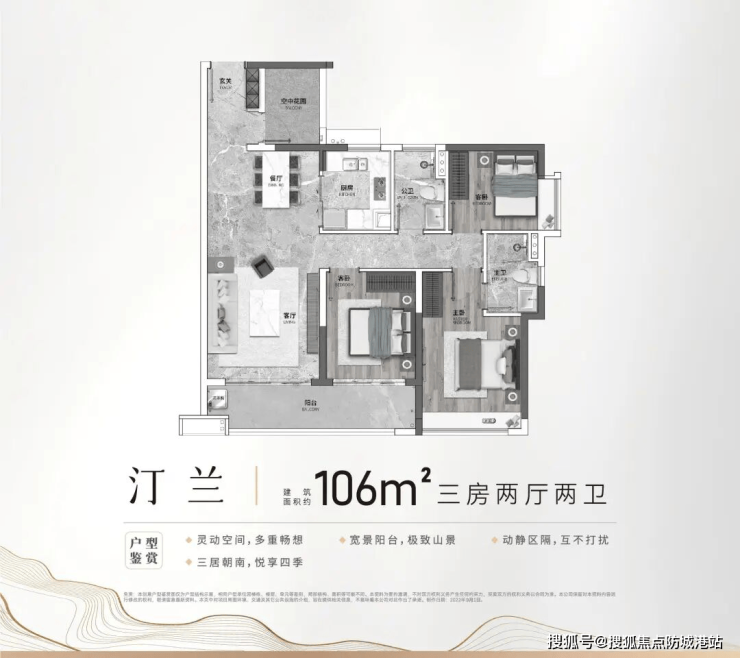 随着家庭成员的增加,对居住空间的需求也随之升级。106㎡的三房户型,正是为那些追求更高生活品质的进阶家庭量身定制。相比91㎡户型,它在各个功能区的尺度上都有了显著的提升。客厅开间更大,视野更加开阔,足以容纳一家人欢聚的时刻。主卧套房设计,配备了独立的卫生间和宽敞的衣帽间,赋予了主人尊贵的私密空间。次卧和儿童房的空间也更加充裕,可以满足孩子成长过程中的各种需求。阳台面宽加大,不仅可以晾晒衣物,更可以打造一个小型的花园或休闲区,让生活多一份情趣。该户型同样保持了南北对流的优势,采光通风俱佳。无论是为了孩子的出生,还是为了接父母同住,106㎡户型都能提供绰绰有余的空间,让家庭生活更加从容自在。