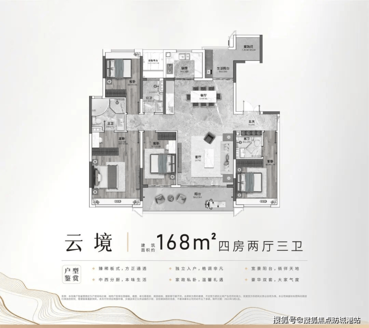 站在金字塔顶端的168㎡纯改善四房户型,是龙狮·璟珑府为城市精英打造的终极居所。该户型在空间规划上达到了极致,每一个平方都被赋予了极高的价值。超大的横厅设计,面宽惊人,将室外的湖光山色毫无保留地引入室内,让人仿佛置身于一幅流动的画卷中。双主套设计,让父母和夫妻都能拥有独立的套房空间,互不打扰,尽显孝道与尊重。中西双厨配置,既能满足中式爆炒的需求,又能享受西式烘焙的乐趣,满足不同口味的美食追求。书房、影音室等多功能空间的预留,让居住者可以根据个人喜好自由定义,打造专属的私人天地。专梯入户、私家电梯厅等高端配置,更是将尊贵感拉满。168㎡户型不仅仅是一个居住空间,更是一种身份的象征,一种对生活品质的极致追求。