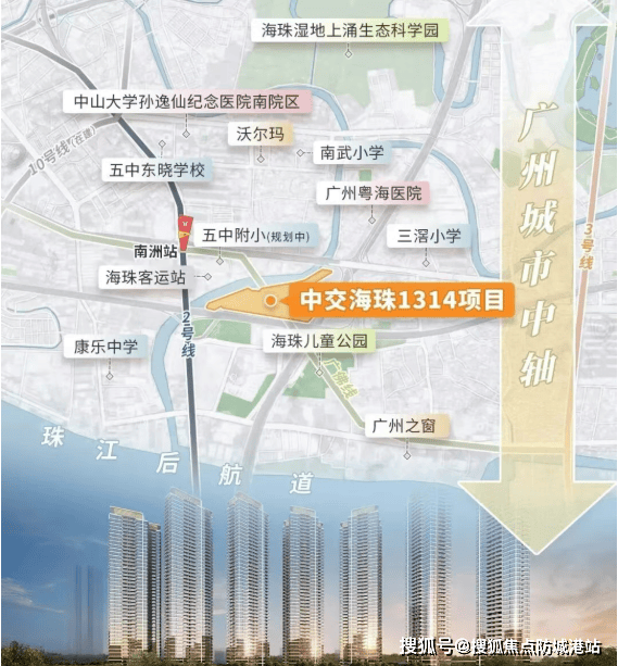 中交天翠位于广州市海珠区,紧邻地铁2号线和广佛线交汇的南洲站,直线距离仅约500米。这一地理位置不仅赋予了项目优越的交通便利性,而且使得居民可以轻松抵达广州各个重要商圈和地标。此外,项目周边环绕着广州大道、环城高速以及南洲路等主要干道,进一步增强了出行的便捷性。