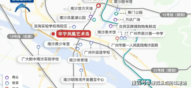 华宇·凤凰艺术城自带幼儿园及托儿所,周边教育资源丰富,包括广大附中南沙实验学校(距项目1公里)、广州外国语学校附属南沙学校(距项目2公里)以及华南师范大学附属南沙中学(距项目5公里)。未来,这一区域的教育资源密度有望进一步提升。