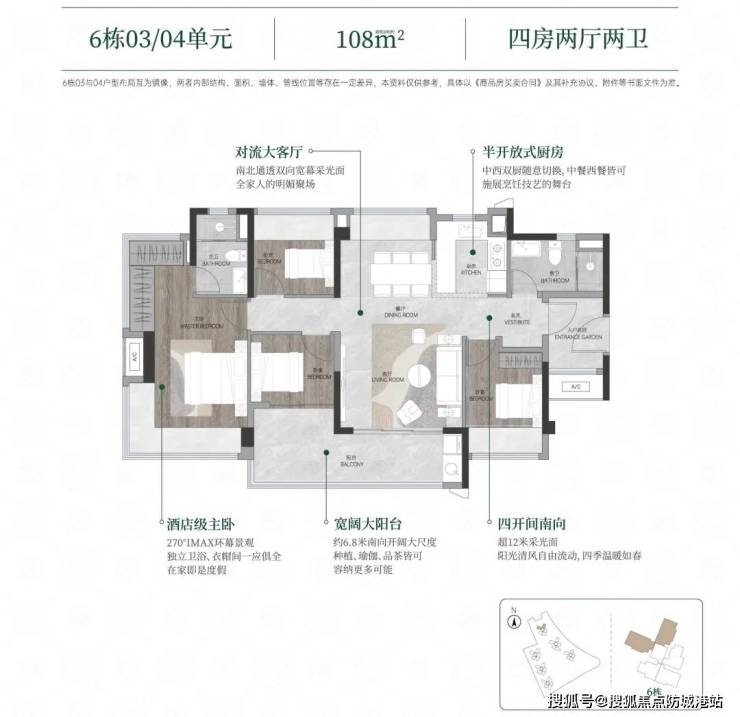 A:88㎡三房得房率超110%,6.2米阳台可改造为第四间房;138㎡四房配备270°环幕阳台,主卧270°景观窗。