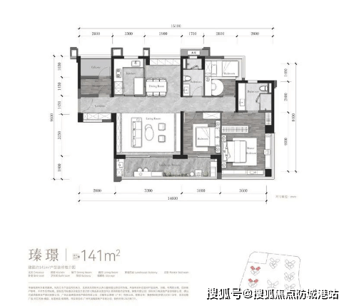 项目推出的户型包括110平方米至180平方米的全南向滨水大宅,所有户型均采用LDK一体化设计,提高空间利用率的同时增强家庭互动性。特别是141平方米户型,配备了约8.2米景观大阳台,提供了多重生活享受的可能性。