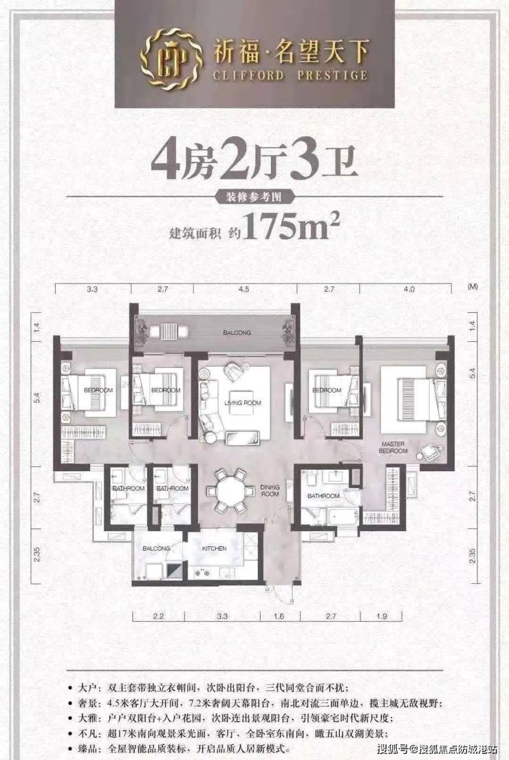 祈福名望天下的户型设计覆盖了从78㎡至175㎡的二至五房,适合不同家庭结构的需求,每户均配备双阳台,充分考虑到了生活的舒适度与实用性。
