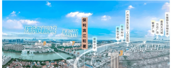 保利滨江和著坐落于番禺大石板块,临近万博 CBD,距离珠江仅 100 米,地理位置优越。交通方面,公共交通上,项目距离地铁 3 号线大石站约 1.3 公里,步行约 19-25 分钟,可直达珠江新城,若嫌步行耗时,可通过小电驴接驳地铁。自驾则更为便捷,出门即上新光快速,不堵车时 30 分钟内可抵达珠江新城、琶洲、大学城,10 分钟可达万博 CBD,轻松融入核心生活圈。