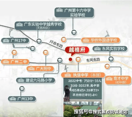 项目所属华乐街道,对口小学为建设六马路小学(省一级),小升初可对口8所省一级初中,包括执信中学、广州市第二中学、广大附中等常年位居中考前列的名校。尤其执信中学本部就在项目旁,真正实现“目送式上学”。