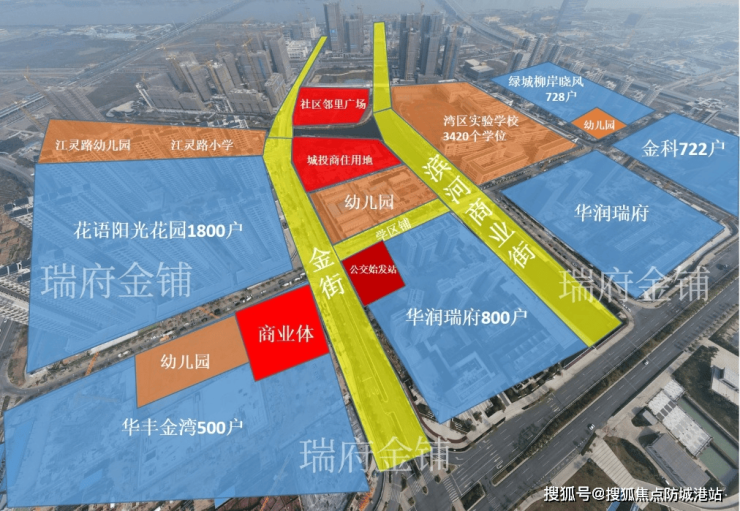 灵山岛尖:政府重点打造的绿色城市、海绵城市、智慧城市和立体城市,以凤凰大道为界,东面为总部商务区,西面为岭南钻石水乡社区。