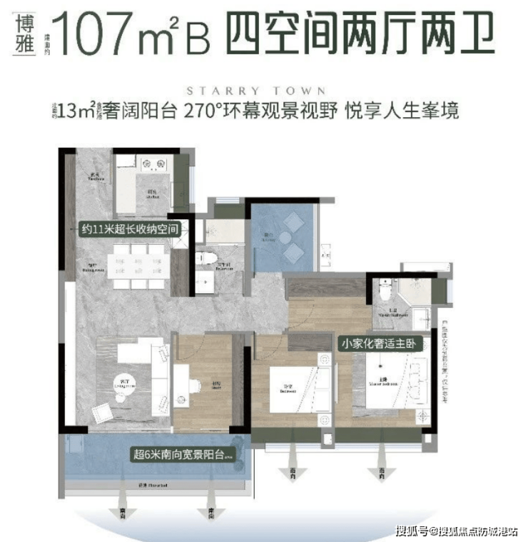 三卧室朝南,超11米景观线