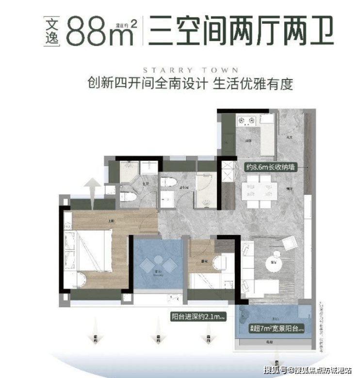 双面宽观景阳台,南北满飘窗