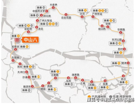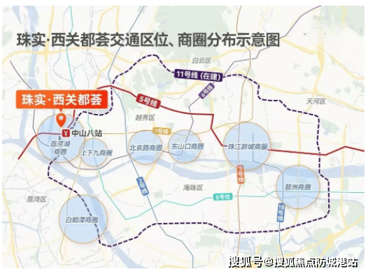 交通方面,项目距离中山八地铁站直线约 500 米,步行即可抵达,坐拥地铁 5 号线与 11 号线双轨交汇,出行便捷度拉满。地铁 5 号线贯穿广州东西,直达淘金、珠江新城、金融城等核心板块;11 号线作为广州首条环线地铁,串联越秀、天河、海珠等区域,快速通达火车站、广州东站、琶洲等重要节点。