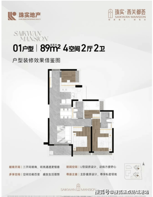 珠实西关都荟主推 2 栋住宅产品,严格遵循新规设计,具备使用率高、飘窗面积大、空间灵动等优势,是西关板块少见的纯改善户型社区。