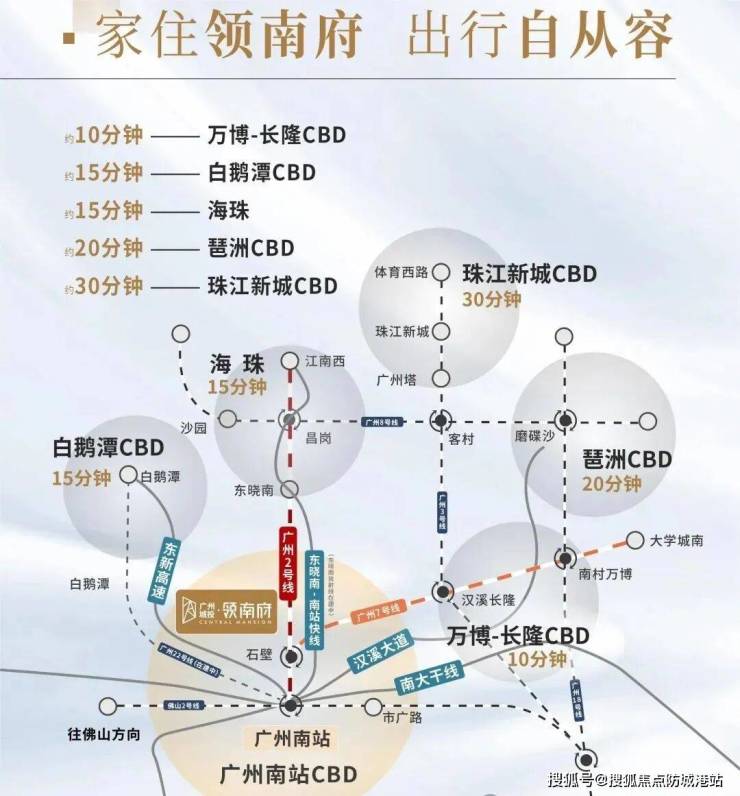 通过2号线、22号线、广佛环线、海珠湾隧道等多维交通,珠金琶、白鹅潭、海珠,全都能直达。