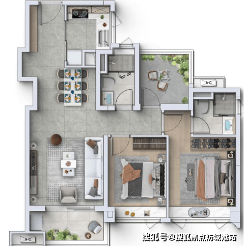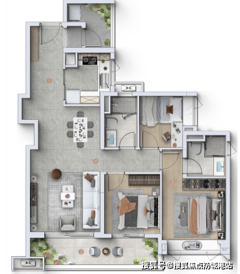 交楼标准:精装交付,配备洗碗机、玄关柜、智能马桶,部分户型标配中央空调、子母门