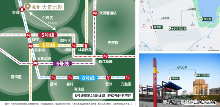 项目占据白云湖板块交通枢纽位置。步行约200米即达地铁8号线亭岗站,该线路贯穿荔湾、海珠、琶洲等核心城区,现已设8座换乘站,可便捷接驳1、2、3号线及广佛线。通过8号线仅3站即可抵达广州白云站(石潭站)——这座总投资440亿元的国家级综合交通枢纽,集1条轻轨、2条高铁、7条地铁于一体,未来将高效串联粤港澳大湾区主要城市。此外,项目周边环绕华南快速、广佛肇高速、广清高速及内环路,35分钟车程可达天河、海珠、荔湾等中心区域,立体交通网络全面赋能出行效率。