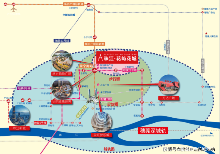 项目步行约900米即达新白广城轨(在建中)/地铁23号线(规划中)永宁南站,据官方报道,新白广城轨将于12月底投入试运营。届时,花屿花城业主在家门口上车,1站即可达新塘TOD、3站到天河北,更能在30分钟内畅达珠江新城,悦享都市繁华生活圈。