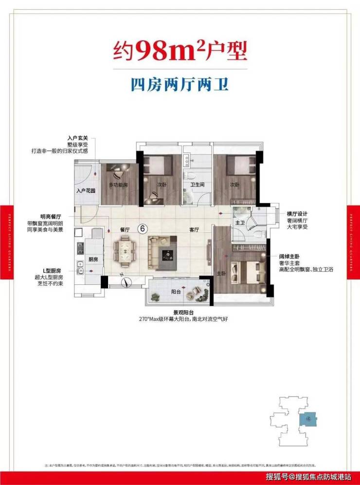【在售户型】珠江·花屿花城全系带主套4房,同等面积每户多一房一卫。采用N+1花城系产品打造理念,匠造79-98㎡区域内唯一的户户带主套四房产品,接近9成的超高实用率。