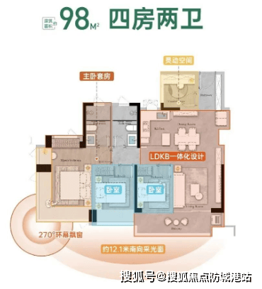 98㎡四房两卫:空间宽敞,布局合理,适合大家庭或改善型需求。