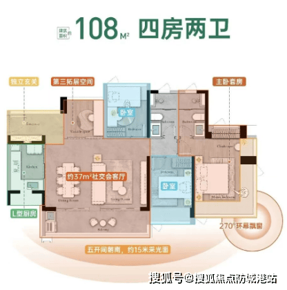 108㎡四房两卫:大面积户型,功能齐全,提供更为舒适的居住体验。