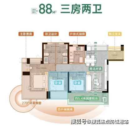 88㎡三房两卫:紧凑实用,适合刚需家庭。