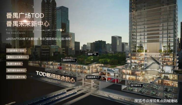 该项目位于番禺广场TOD之上,实现了真正的地铁上盖设计,下楼即是番禺广场站E口。其内部设计强调高使用率,如“LDKB+X”一体化设计、“巨能装”收纳设计等,旨在提升居住品质。同时,周边配套齐全,包括成熟的教育资源、丰富的商业设施以及便捷的医疗资源。