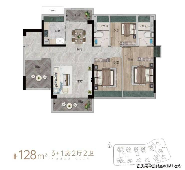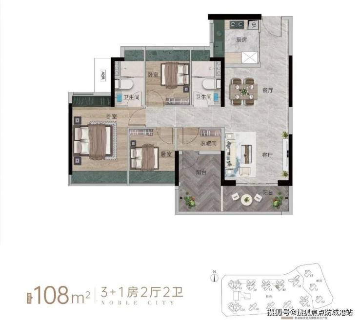 该户型是108平的放大版,四开间朝东南,基本每个空间都会大一些。
